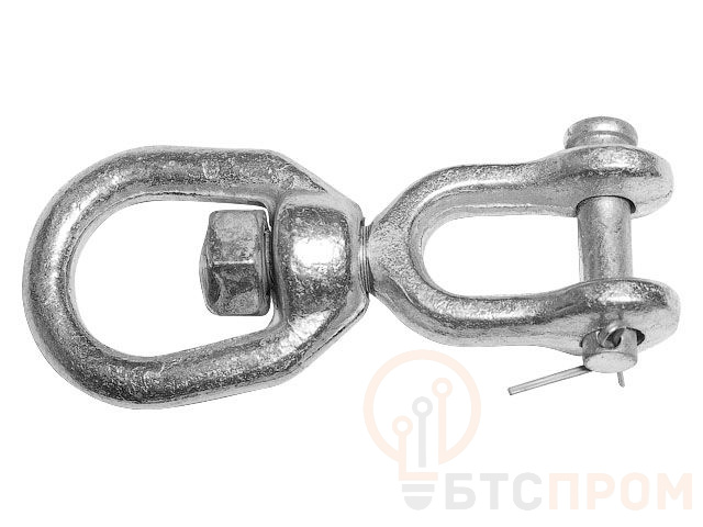 Вертлюг изготовлен из оцинкованной углеродистой стали и предназначен как соединительное звено между двумя тросами, цепями, позволяющее каждому из них вращаться вокруг своей оси. предотвращая их от скручивания.