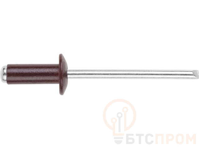 Материал: корпус заклепки - алюминий; стержень (вытяжной элемент) - сталь с цинковым покрытием;