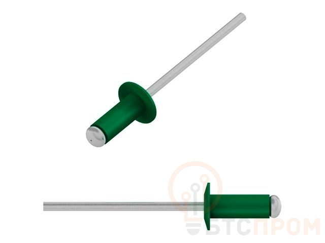 Материал: корпус заклепки - алюминий; стержень (вытяжной элемент) - сталь с цинковым покрытием;