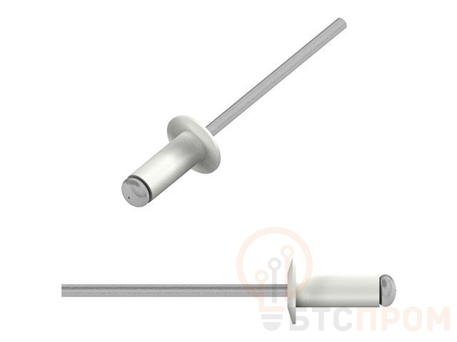 Материал: корпус заклепки - алюминий; стержень (вытяжной элемент) - сталь с цинковым покрытием;