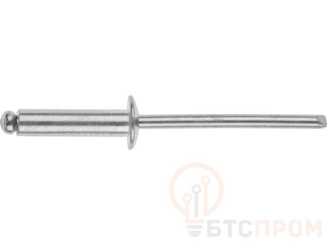 Материал: корпус заклепки - алюминий; стержень (вытяжной элемент) - сталь с цинковым покрытием
