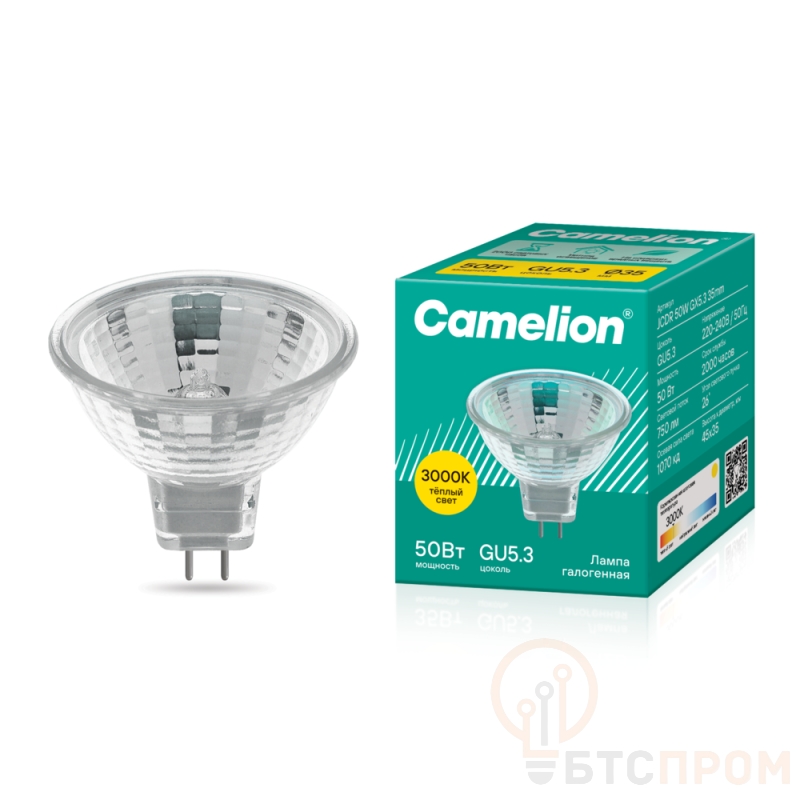 Галогенные лампы предназначены для светильников внутреннего и наружного освещения, прожекторов. Лампы имеют повышенный срок службы - работают вдвое дольше обычных ламп накаливания. Могут использоваться с регуляторами яркости. Галогенная лампа, мощность, Вт - 50, напряжение, В - 220-240, световой поток, лм - , форма колбы - рефлектор, цвет колбы - прозрачная, цоколь GU5.3, цветовая температура, К - 3000, срок службы, ч. - 2000