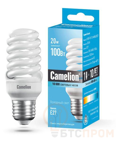 Лампа люминесцентная компакт. LH FS T2 M 20Вт спиральная 4200К E27 220В Camelion 10523 фото в каталоге от BTSprom.by