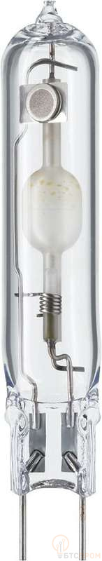 Компактная металлогалогенная лампа с керамической горелкой и стандартным цоколем, излучающая яркий белый свет с высоким индексом цветопередачи.
