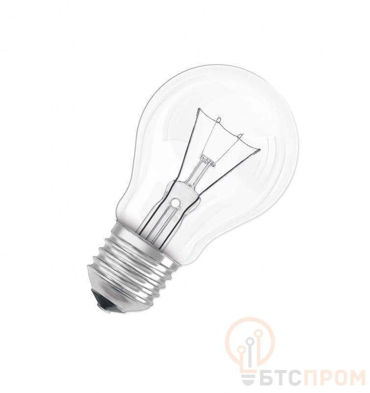 Лампа накаливания OSRAM формы груши 95Вт. Прозрачная колба, цоколь Е27. Лицензиатом торговой марки OSRAM в общем освещении является компания LEDVANCE.