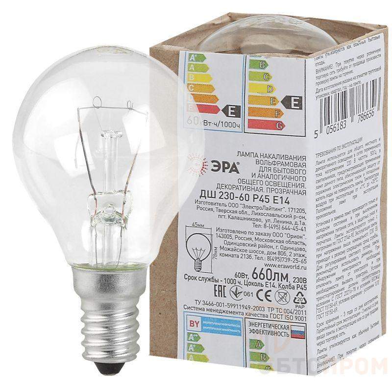 Лампа накаливания ДШ 60-230-Е14 60Вт от бренда ЭРА — классическое решение для организации основного и дополнительного освещения в различных помещениях. Модель выполнена в форме шара (P45) диаметром 45 мм, что обеспечивает равномерное рассеивание света во всех направлениях.