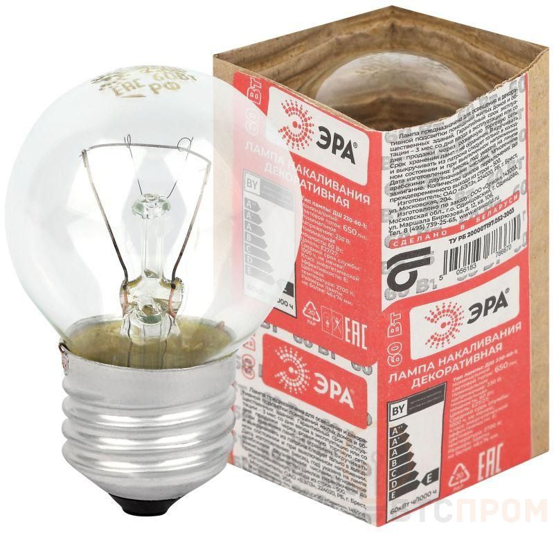 Лампа накаливания ДШ 60-230-Е27 60Вт шар (P45) 230В Е27 ЭРА Б0039135 фото в каталоге от BTSprom.by