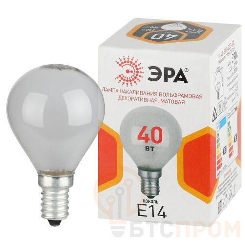 Лампа накаливания P45 40Вт. Лампа в форме шара с цоколем E14. Матовая колба. Мягкое рассеянное освещение для небольших закрытых плафонов. Напряжение 230В.