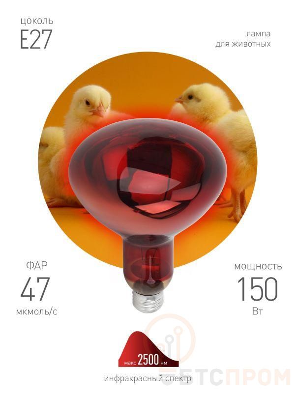 Излучатель тепловой (лампа инфракрасная) ИКЗК 230-150 R127 150Вт E27 для обогрева животных и освещения КЭЛЗ Б0055441