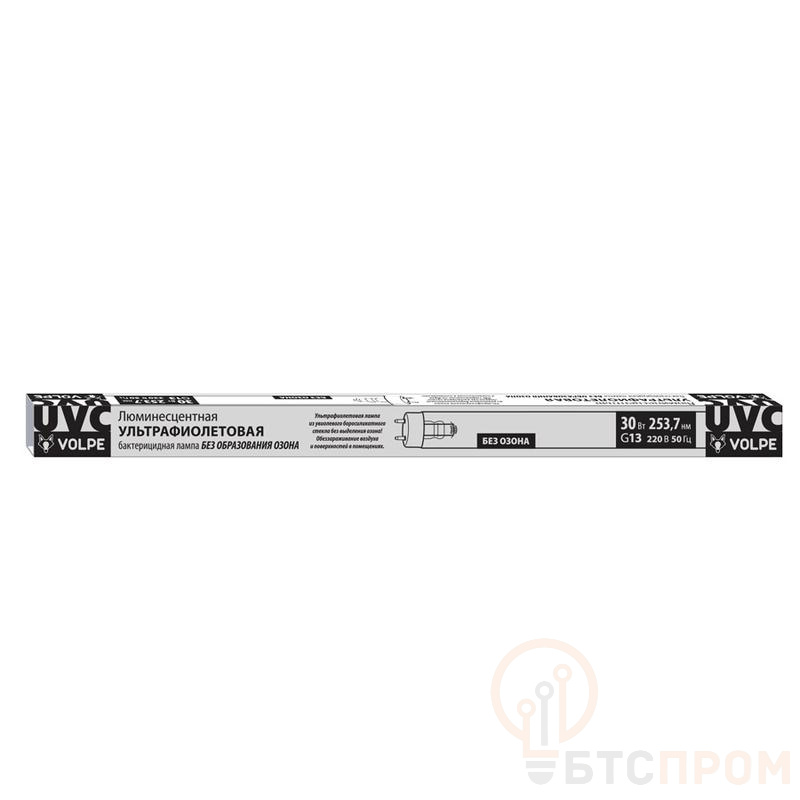 Бактерицидная лампа EFL-T8-30/UVCB/G13/CU/V — бактерицидная лампа мощностью 30Вт под брендом Volpe. Цоколь G13. Рекомендуется для использования в учреждениях с повышенными требованиями к чистоте воздуха.