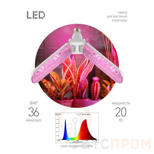Лампа светодиодная GREEN LINE ФИТО-20W-PL-E27-GR 20Вт E27 для растений 2-х лепестковая красн./син. спектра Эра Б0064517
