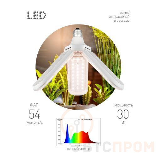 Лампа светодиодная GREEN LINE ФИТО-30W-PFR-E27-GR 30Вт E27 для растений 3-х лепестковая полного спектра Эра Б0064518