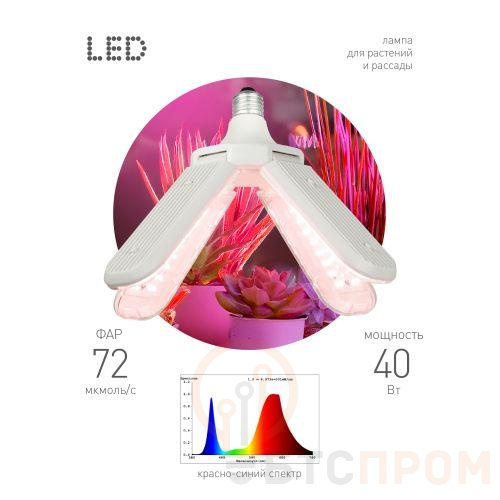Лампа светодиодная GREEN LINE ФИТО-40W-PL-E27-GR 40Вт E27 для растений 4-х лепестковая красн./син. спектра Эра Б0064525