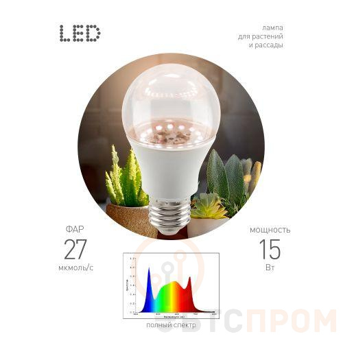 Лампа светодиодная GREEN LINE ФИТО А60-15W-PFR-E27-GR 15Вт E27 для растений полного спектра Эра Б0064527