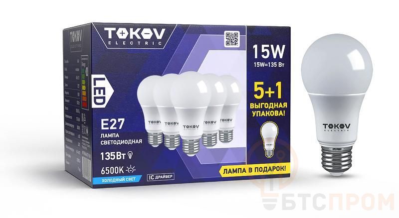 Набор ПРОМО лампа светодиодная 15Вт А60 6500К Е27 176-264В (Promo 5+1 шт) TOKOV ELECTRIC Promo-A60-E27-15-6.5K