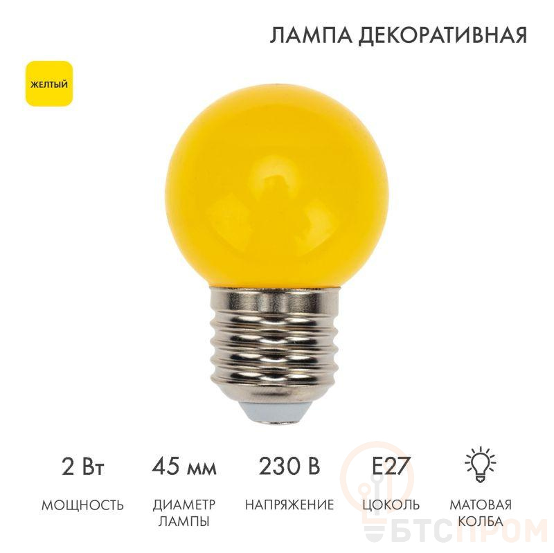 –Лампа светодиодная 1Вт шар d45 5LED желт. E27 Neon-Night 405-111