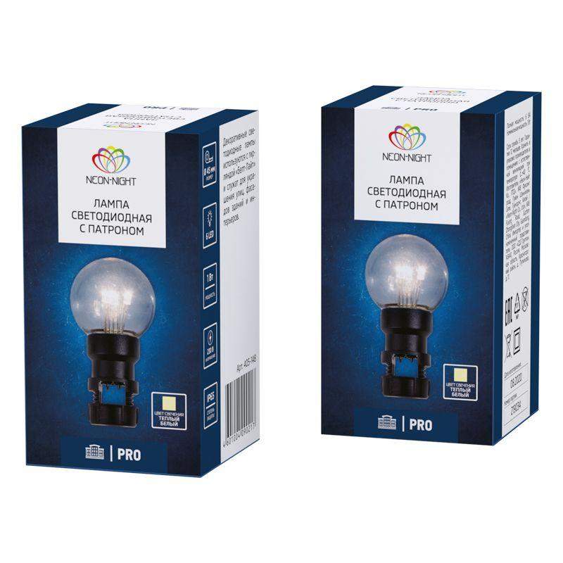 Лампа светодиодная 1Вт шар d45 6LED прозрачная тепл. бел. с патроном для белт-лайта Neon-Night 405-148