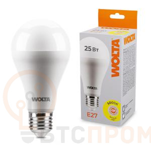 Лампа WOLTA мощностью 25Вт. Теплый белый свет (3000К), цоколь E27. Обеспечивает насыщенное и комфортное освещение просторных гостиных, столовых, залов кафе.
