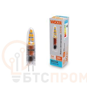 Лампа G4 на 220В с холодным светом (6500К) от WOLTA. Позволяет организовать яркую точечную подсветку прямо от бытовой сети. Часто используется в офисных зданиях, торговых залах и для подсветки рекламных конструкций.