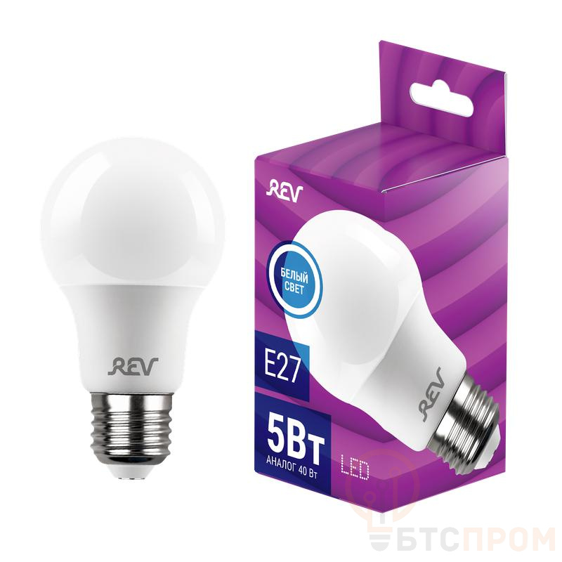 Светодиодная лампа REV стандартной формы (A60). Мощность 5Вт, нейтральный белый свет (4000К), цоколь E27. Световой поток 420 лм. Широкий диапазон напряжений 180-240В гарантирует стабильную работу в условиях сельских или старых городских сетей. Бренд REV известен надежностью и оптимальным соотношением цены и качества. Идеальна для повседневного использования в коридорах, подсобных помещениях, подъездах.