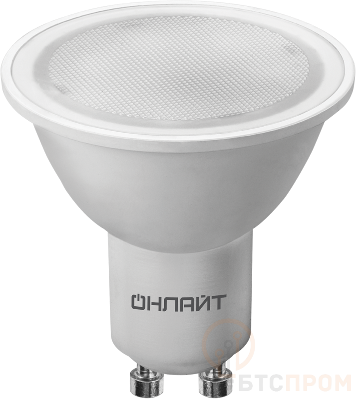 Зеркальный спот ОНЛАЙТ типа PAR16. Мощность 5Вт, нейтральный белый свет (4000К), цоколь GU10. Световой поток 375 лм. Направленный свет для акцентной подсветки.