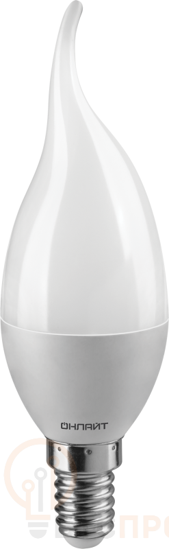 Лампа светодиодная 71 620 OLL-FC37-6-230-2.7K-E14-FR ОНЛАЙТ 4670004716205 – лампа с колбой вида "свеча", белого света, длиной 130 мм, с цоколем Е14, мощностью 6 Вт. Цветовая температура 2700 К.
