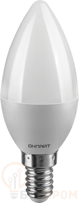 Лампа светодиодная 71 629 OLL-C37-6-230-4K-E14-FR ОНЛАЙТ 4670004716298 – лампа с колбой типа "свеча", длиной 104 мм, с цоколем Е14, мощностью 6 Вт. Цветовая температура 4000 К. Дает нейтральный белый свет.