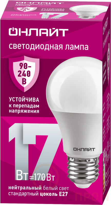 Лампа светодиодная 90 403 OLL-A60-17-230-4K-E27 (PRO 90-240В) ОНЛАЙТ 90403 фото в каталоге от BTSprom.by