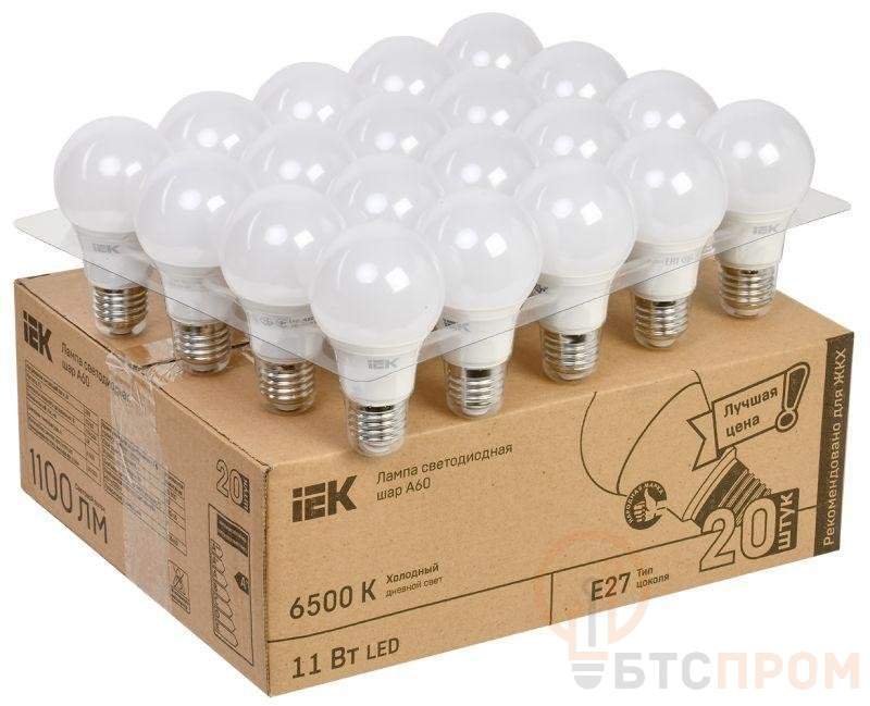 Лампа светодиодная A60 шар 11Вт 230В 6500К E27 (уп.20шт) IEK LLE-A60-11-230-65-E27-20 фото в каталоге от BTSprom.by