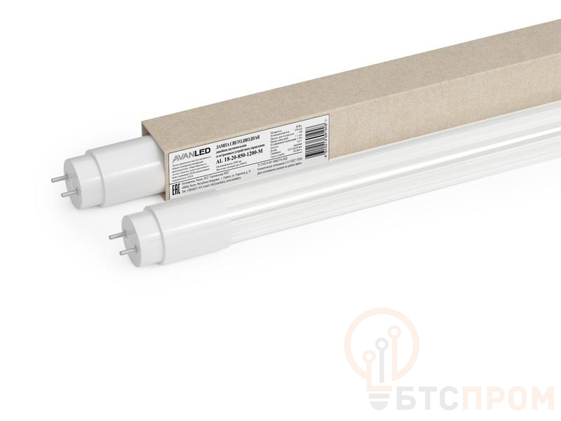 Светодиодная лампа AVANLED 11112502. Форма T8, мощность 20Вт, длина 1200мм, матовая колба. Стандартный цоколь G13. Современное энергосберегающее решение для основного освещения коммерческих и промышленных объектов. Длительный срок службы.