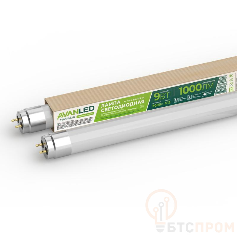 Лампа светодиодная AL T8-9-830-600-М 9Вт матовая 3000К тепл. бел. G13 1000лм 195-265В (пр-во РФ) AVANLED 11106301