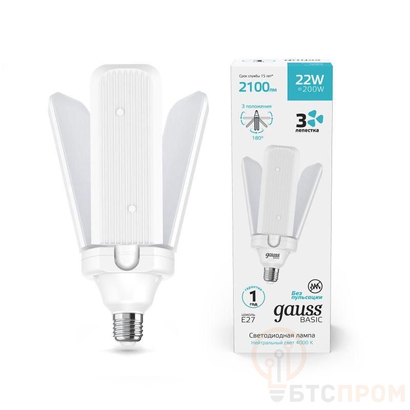 –Лампа светодиодная Basic 22Вт клевер-3 4000К нейтр. бел. E27 2100лм GAUSS 11732222