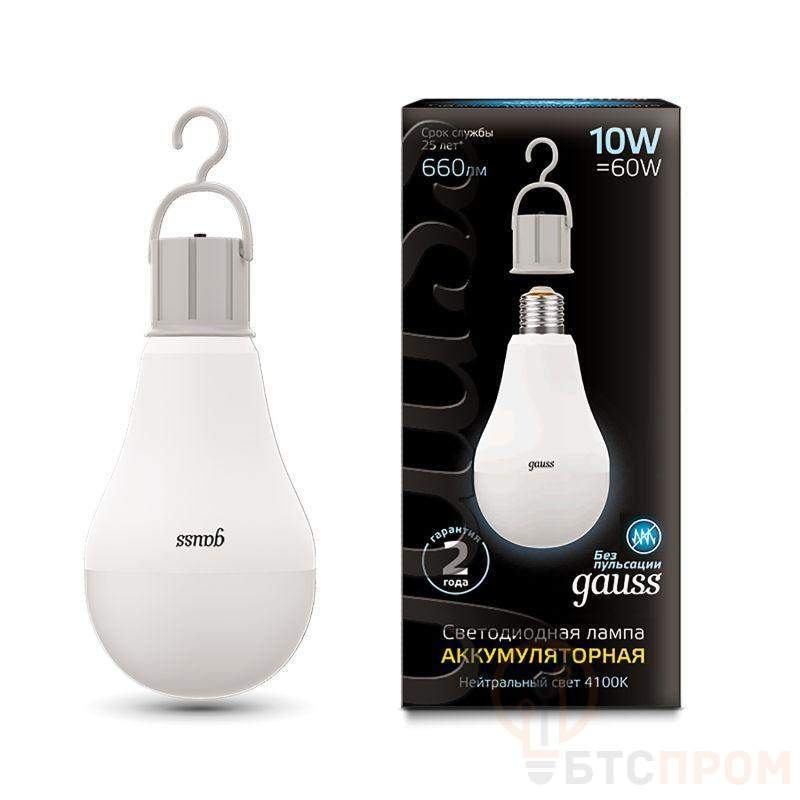 Лампа светодиодная Black 10Вт A60 грушевидная 4100К нейтр. бел. E27 660лм аккум. Li-Ion GAUSS 102402200