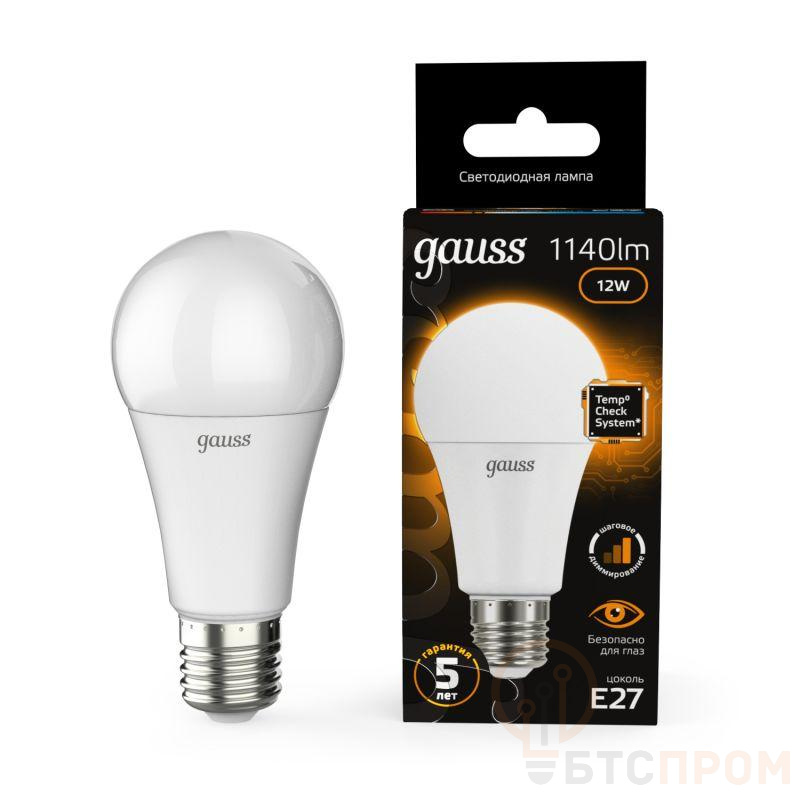 Лампа светодиодная Black 12Вт A60 грушевидная 3000К тепл. бел. E27 1140лм шаг. диммир. GAUSS 102502112-S