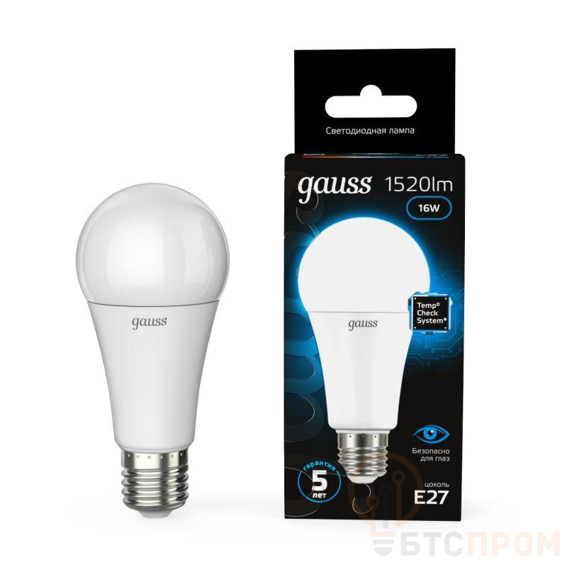 –Лампа светодиодная Black 16Вт A60 грушевидная 6500К холод. бел. E27 1470лм GAUSS 102502316
