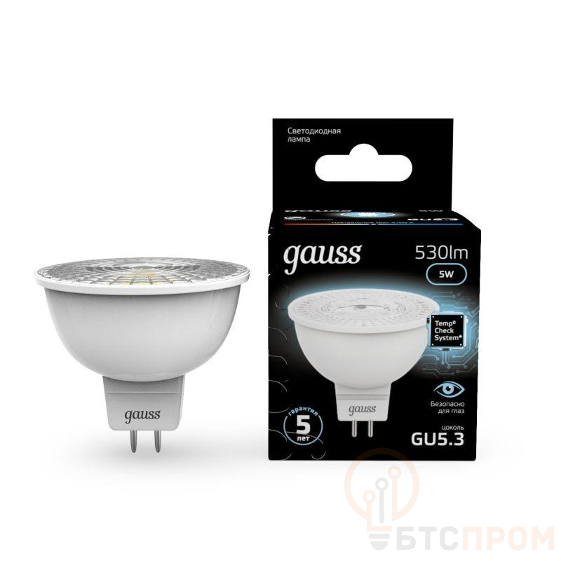 Лампа светодиодная Black 5Вт MR16 софит 4100К нейтр. бел. GU5.3 530лм GAUSS 101505205 фото в каталоге от BTSprom.by