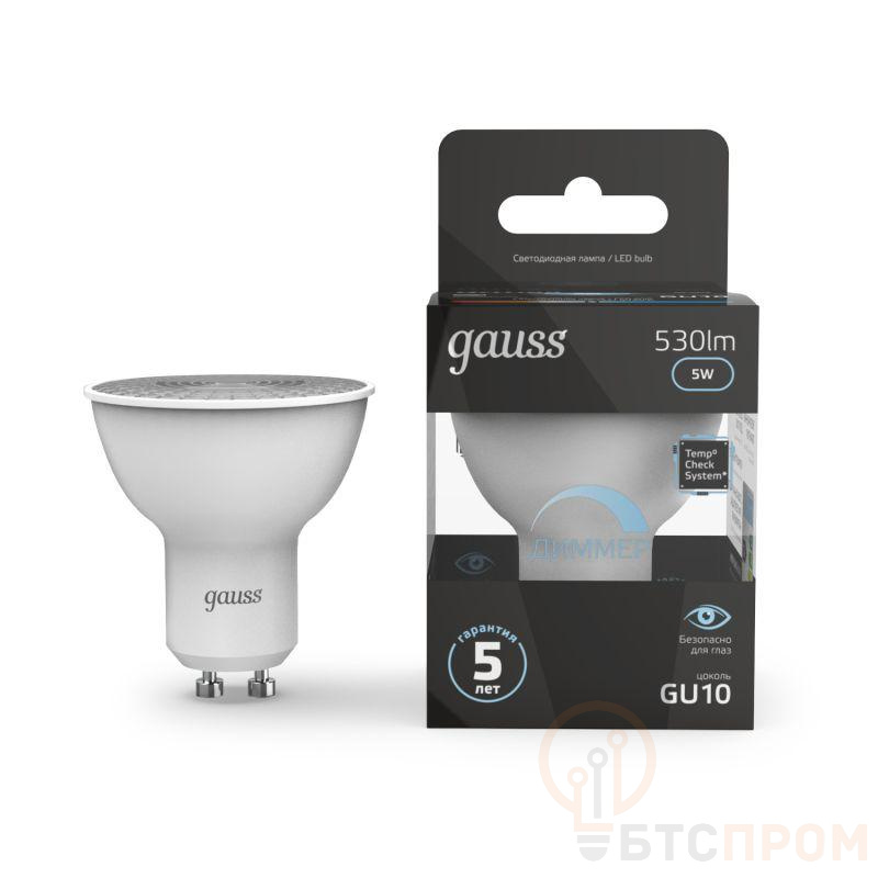 –Лампа светодиодная Black 5Вт MR16 софит 4100К нейтр. бел. GU10 530лм диммир. GAUSS 101506205-D
