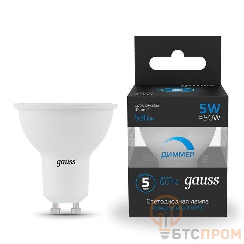 Лампа светодиодная Black 5Вт MR16 софит 6500К холод. бел. GU10 530лм диммир. GAUSS 101506305-D фото в каталоге от BTSprom.by