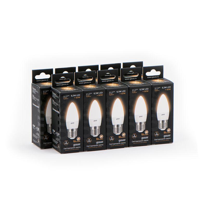 Лампа светодиодная Black 6.5Вт свеча 3000К тепл. бел. E27 520лм GAUSS 103102107 фото в каталоге от BTSprom.by