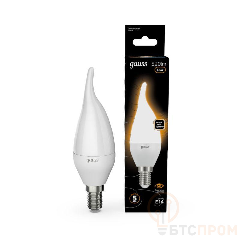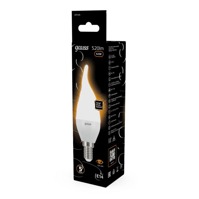 Лампа светодиодная Black 6.5Вт свеча на ветру 3000К тепл. бел. E14 520лм GAUSS 104101107 фото в каталоге от BTSprom.by