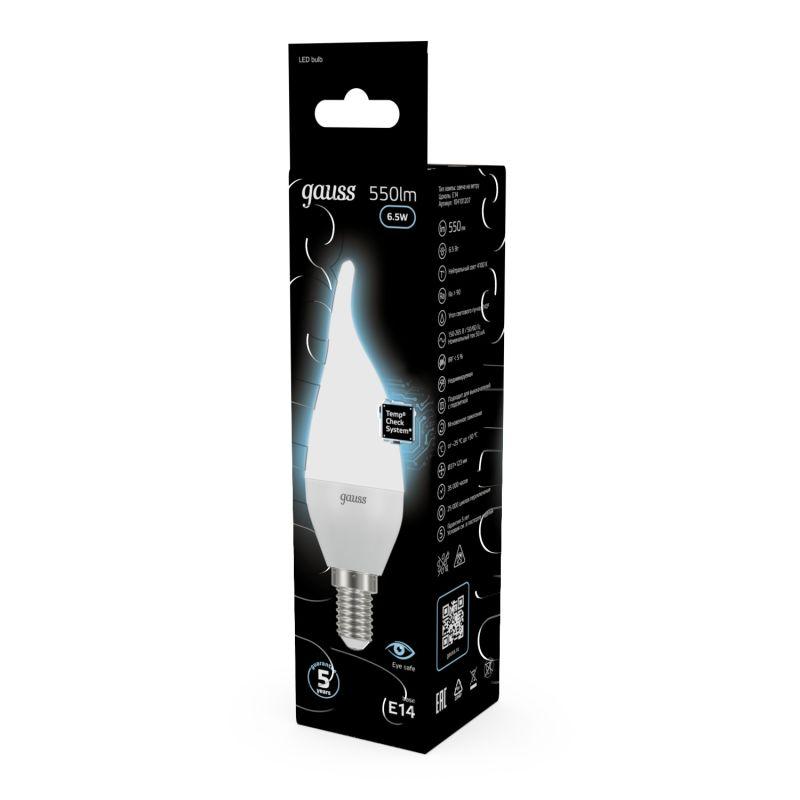 Лампа светодиодная Black 6.5Вт свеча на ветру 4100К нейтр. бел. E14 550лм GAUSS 104101207