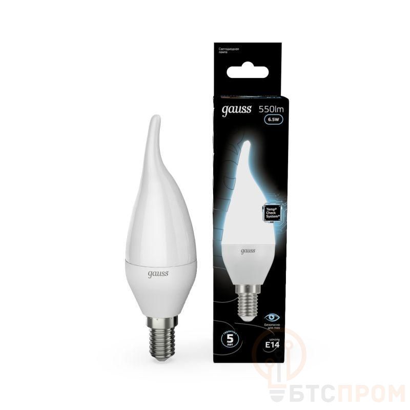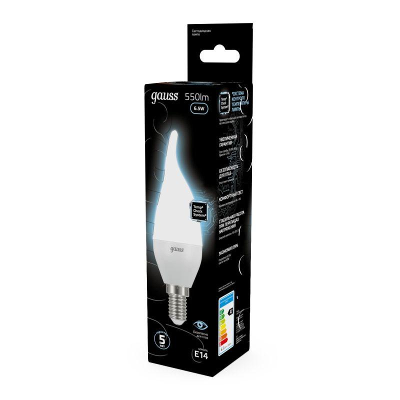 –Лампа светодиодная Black 6.5Вт свеча на ветру 4100К нейтр. бел. E14 550лм GAUSS 104101207