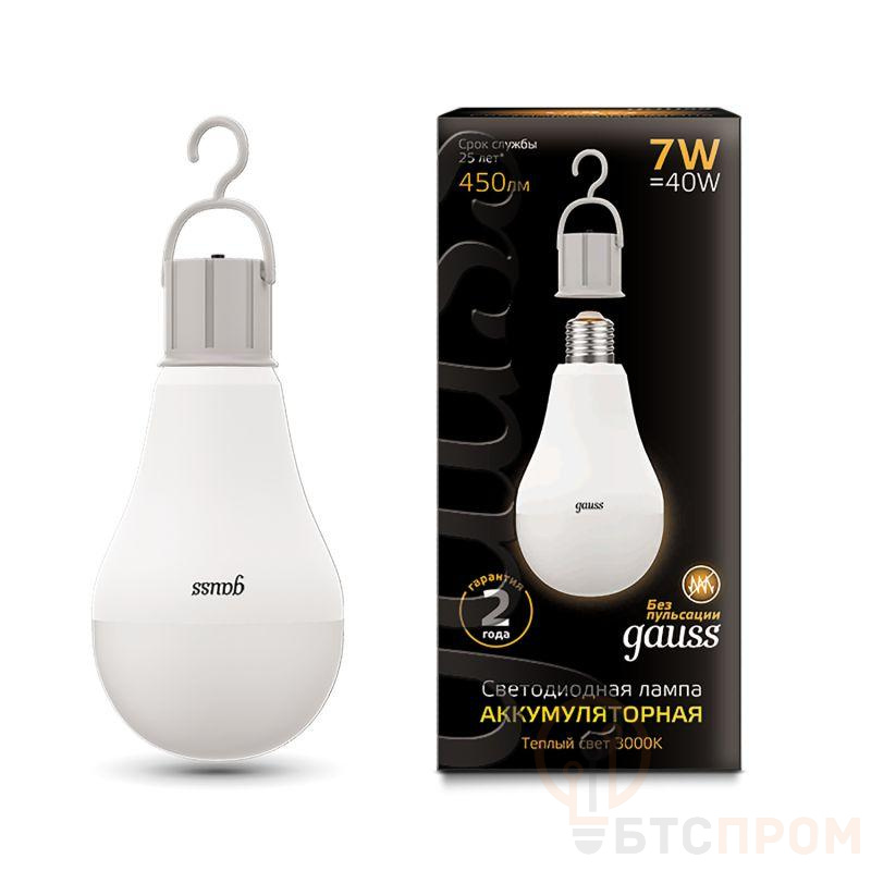 Лампа светодиодная Black 7Вт A60 грушевидная 3000К тепл. бел. E27 450лм аккум. Li-Ion GAUSS 102402107