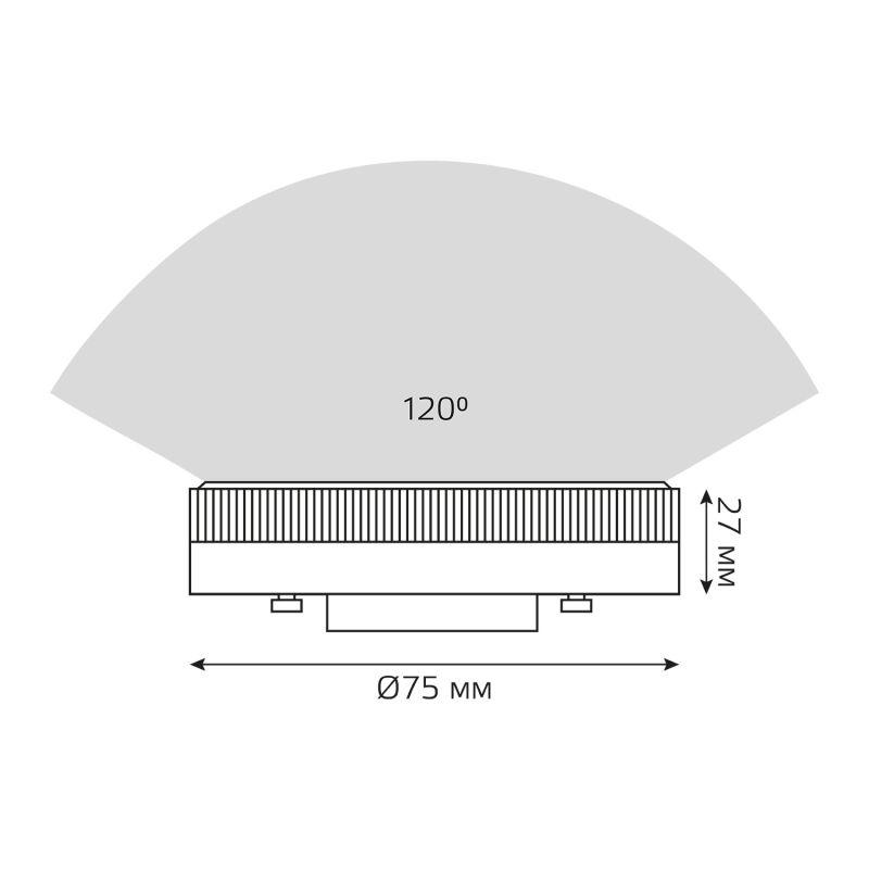 Лампа светодиодная LED GX53 8Вт 2700К Gauss 108008108 – лампа-"таблетка", желтого света, диаметром 75 мм, с цоколем GX53, мощностью 8 Вт. Цветовая температура 2700 К.