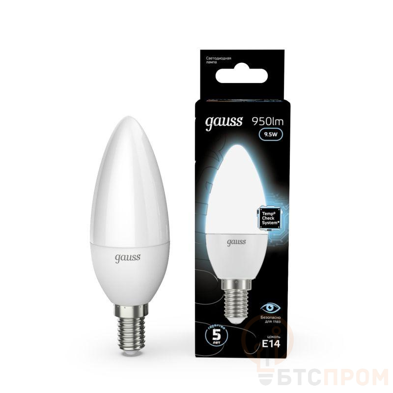 –Лампа светодиодная Black 9.5Вт свеча 4100К нейтр. бел. E14 950лм GAUSS 103101210