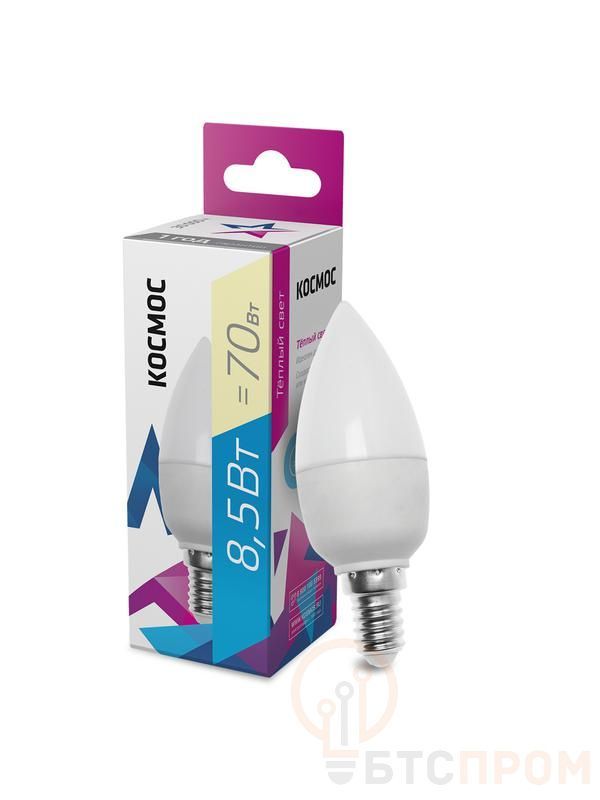Светодиодная лампа КОСМОС LkecLED8.5wCNE1430 мощностью 8.5 Вт создает комфортное тепло-белое свечение 3000К, идеальное для создания уютной атмосферы в жилых помещениях. Благодаря классической форме "свеча" и компактному цоколю E14, эта лампа идеально подходит для небольших светильников, бра, ночников, декоративных люстр и настенных светильников.