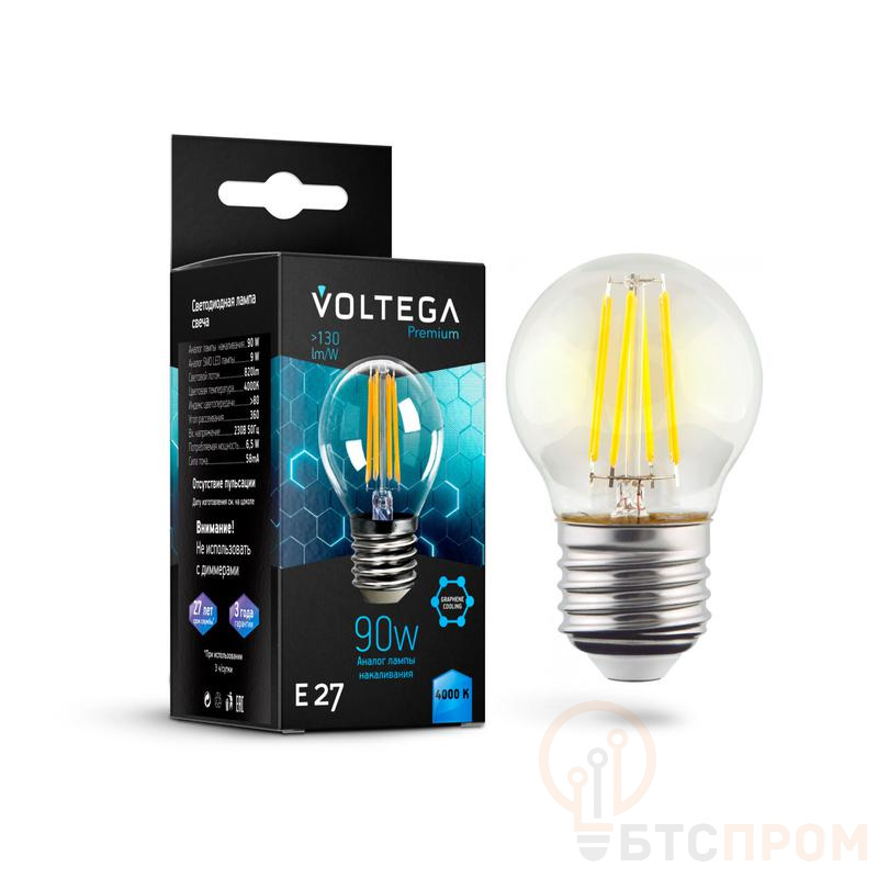 Лампа светодиодная Voltega 7139 Crystal Graphene Globe. 9Вт. Нейтральный белый свет 4000K. Цоколь E27. Универсальное решение для основного освещения. Graphene технология обеспечивает эффективное рассеивание тепла, что повышает надежность и срок службы.