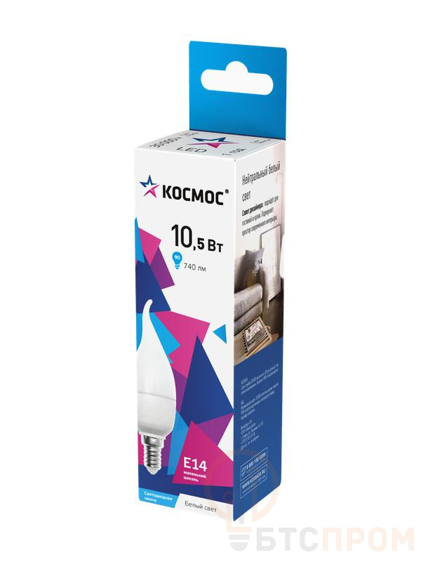 Светодиодная лампа КОСМОС LkecLED10.5wCWE1445. Мощность 10.5Вт. Нейтральный белый свет 4500K. Цоколь E14. Напряжение 174-265В. Широкий диапазон рабочих напряжений обеспечивает стабильную работу при перепадах в сети. Подходит для жилых и коммерческих помещений.