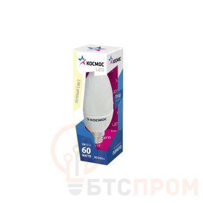 Лампа светодиодная CW 5Вт свеча на ветру 3000К тепл. бел. E14 420лм 220-240В КОСМОС Lksm_LED5wCWE1430