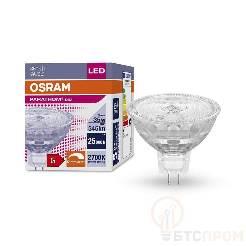 Лампа светодиодная диммируемая PARATHOM MR16 5Вт 2700К тепл. бел. GU5.3 345лм прозр. стекло 12В (замена 35Вт) OSRAM 4058075796515